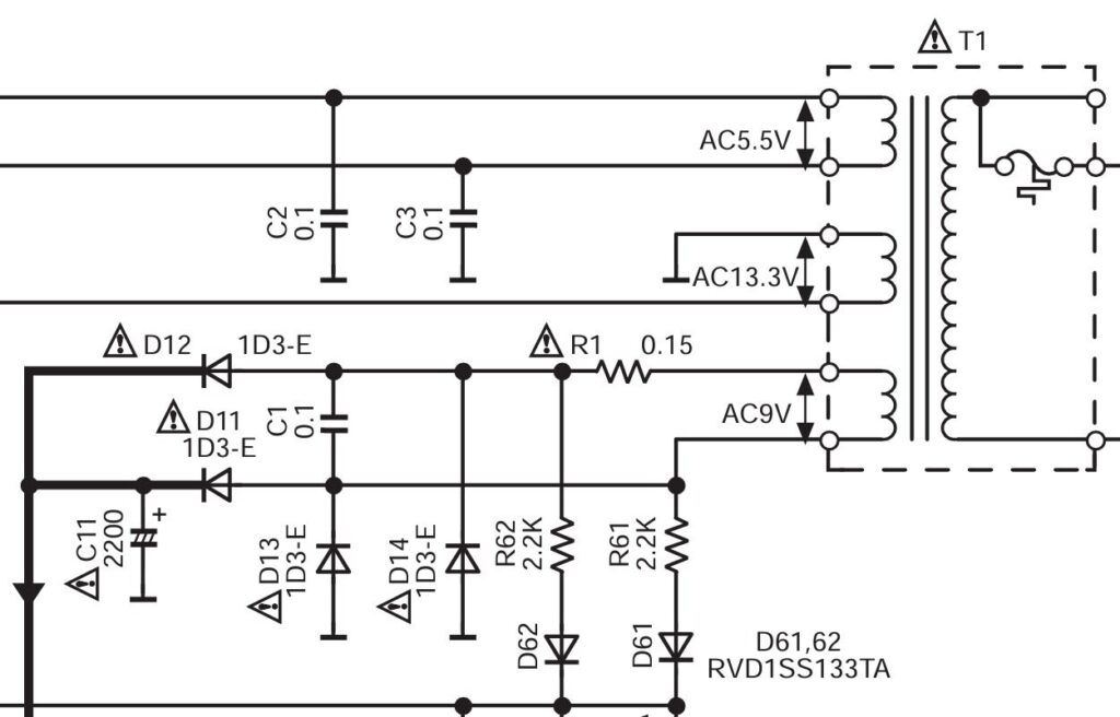 To keep the system truly self-contained, I wanted to power the Pi directly from the CD player’s internal power supply, keeping a single mains connection. With the aid of the service manual for the Technics player, the various low-voltage supplies could be easily identified: